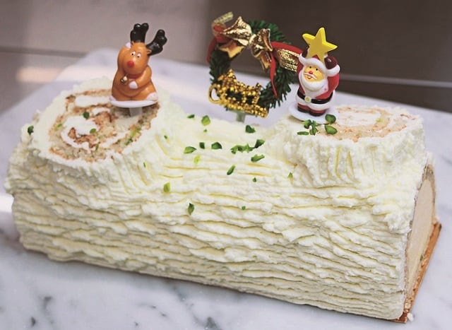 12月といえばX'mas! ご用意したのは雪をイメージした白いビュッシュ・ドゥ・ノエル。